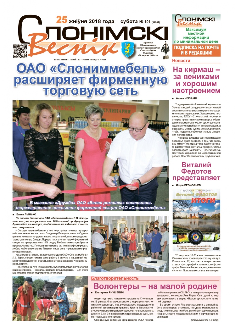 По словам директора ОАО «Слониммебель» В.В. Маркушевского, несмотря на то, что 70% готовой продукции фабрики идет на экспорт, предприятие не забывает и местного покупателя.